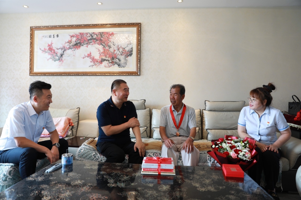 张立峰先后来到老党员葛玉林、刘志明 、温守峰 、贾花眼的家中,亲手为他们佩戴“光荣在党50年”纪念章,并与老党员亲切交谈,悉心询问近期身体和生活情况,转达党组织的关心关爱,聆听他们矢志不渝跟党走的感人故事。